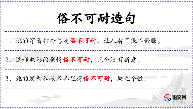 - 俗不可耐:形容词短语,意为“非常庸俗,让人难以忍受”。