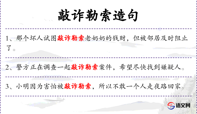 1. 【敲诈勒索】 依仗势力或抓住把柄进行恐吓,用威胁手段索取财物。