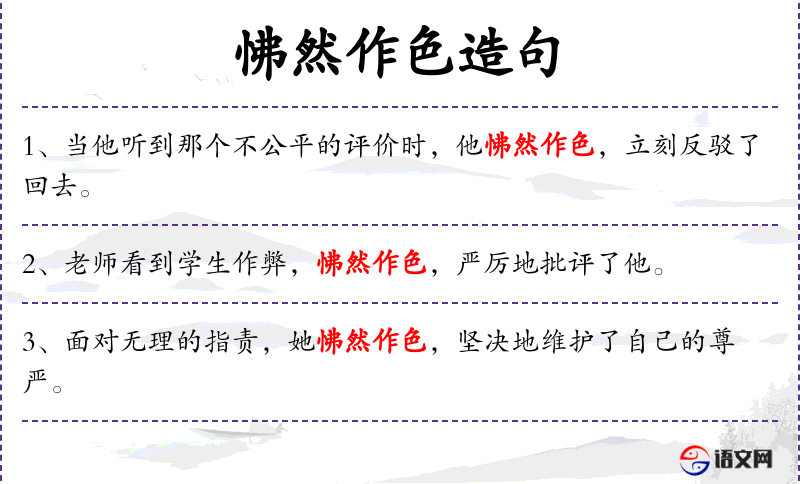 在实际交流中,这种表达强调了个人对不公正待遇的反应,以及对真相的坚持。使用“怫然作色”和“立即澄清”这样的词汇,传达了一种强烈的情绪和坚定的态度。