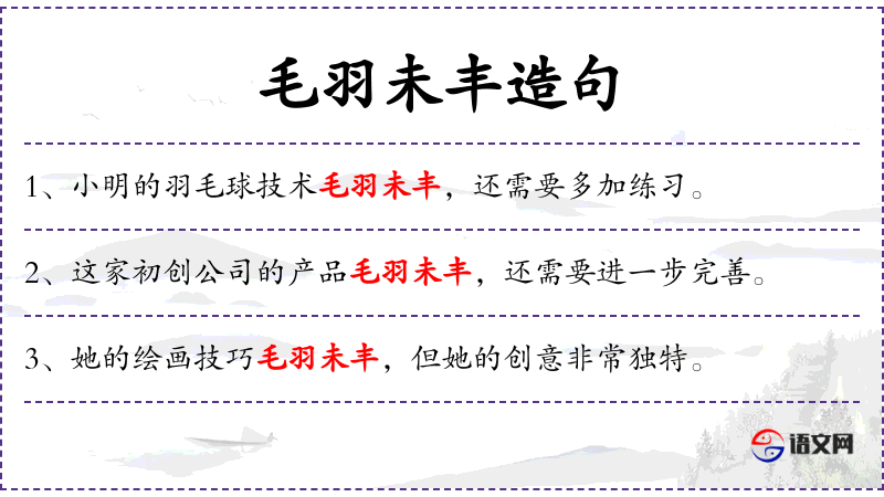 1. 【毛羽未丰】 - 比喻力量不足,条件还不成熟。