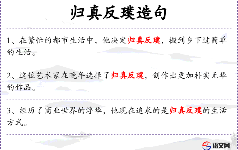 - 归真反璞:成语,意为回归自然、简单的生活状态。