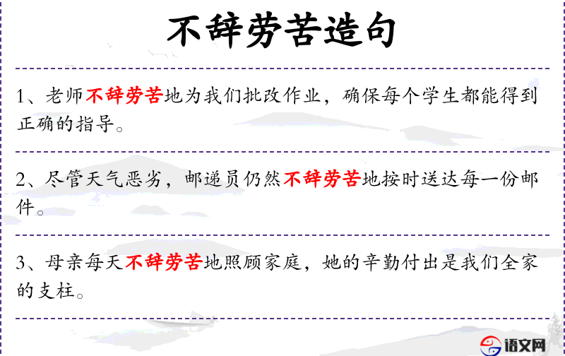 辞:推托;劳苦:劳累辛苦。不逃避劳累辛苦。形容人不怕吃苦,毅力强。