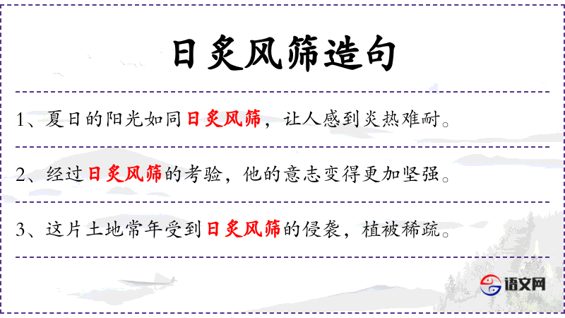 - 宾语:日炙风筛的侵袭