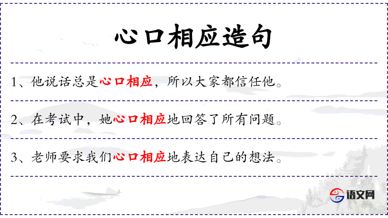 - “长辈们总是教导我们,要确保心口相应,言行一致。”