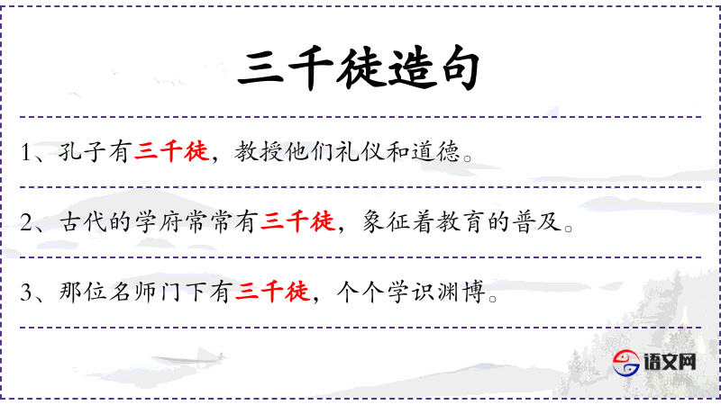 1. 【三千徒】 - 指孔子弟子三千人。