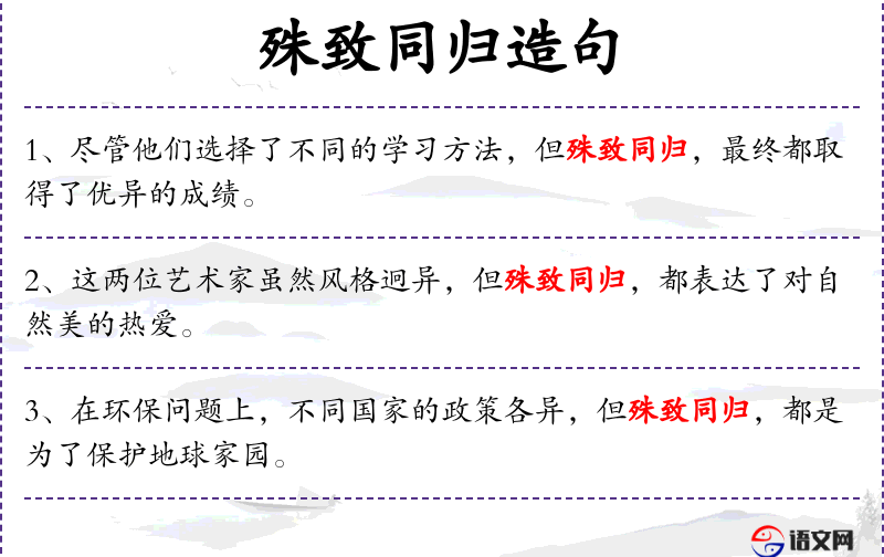 1. 【殊致同归】 - 比喻采取不同的方法而得到相同的结果。同“殊涂同归”。