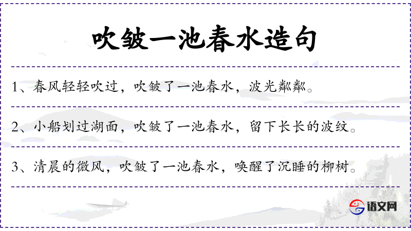 - “在清晨,微风轻轻地吹皱了春水,同时也唤醒了柳树。”