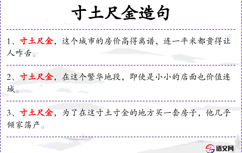 “寸土尺金”是一个成语,源自古代的度量衡单位,形容土地非常珍贵。这个成语反映了人对土地的重视和珍惜。