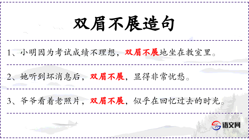 在**文化中,“双眉不展”常用来形容人心情不佳或忧虑。这种表达方式体现了对细微面部表情的观察和描述。