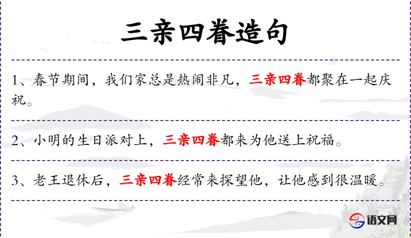 - 三亲四眷:成语,指亲戚朋友。