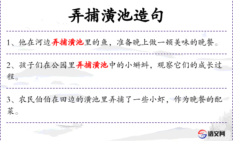 - 宾语:“附近的潢池弄捕”、“钓鱼的乐趣”