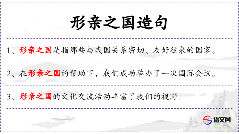 - 形亲之国:可能指的是一个与自己国家关系亲近或文化相近的国家。
