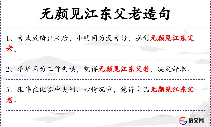 - 无颜见江东父老:成语,意为因为做了错事而感到羞愧,不敢面对家乡的亲人和朋友。