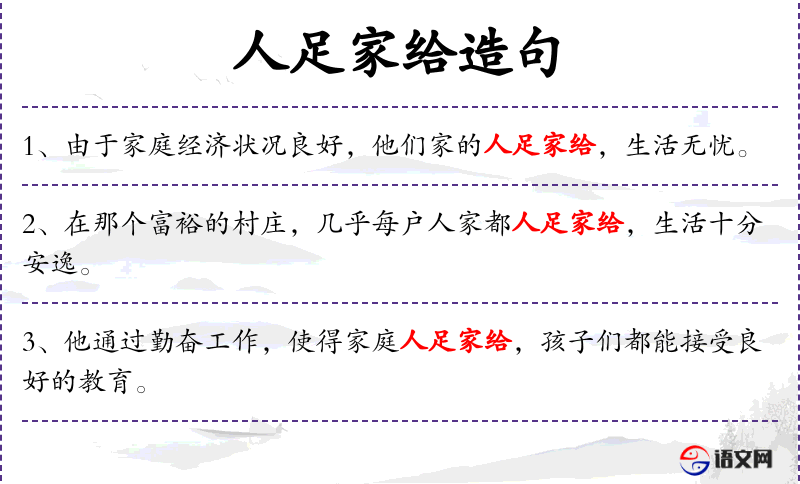 - 文化背景:在**文化中,“人足家给”强调家庭成员的充足和生活的富足,反映了人们对家庭幸福和社会稳定的期望。
