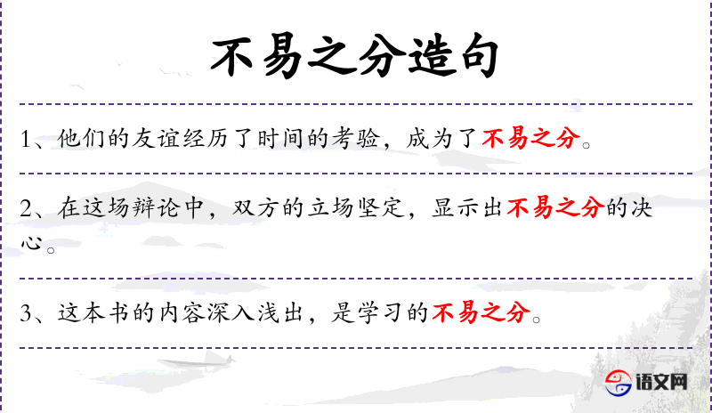 - 不易之分的决心:成语,表示决心非常坚定,不容易被改变或动摇。