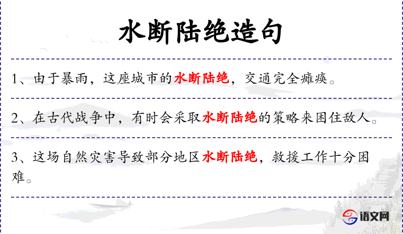 3. 【水断陆绝】 指道路阻隔,不能相通。
