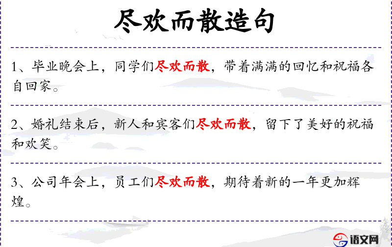 - 尽欢而散:尽情享受后各自离开