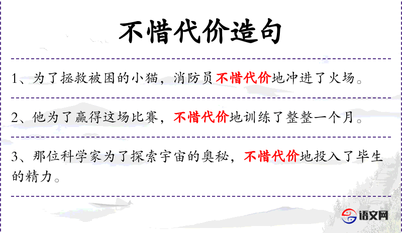 - 不惜代价:不顾一切代价,同义词有“不遗余力”、“全力以赴”。