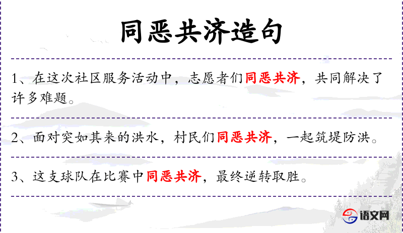 - 成语:“同恶共济”是一个典型的中文成语,反映了共同面对困难的精神。