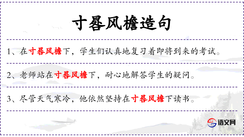- 状语:在寸晷风檐下、认真地、即将到来的