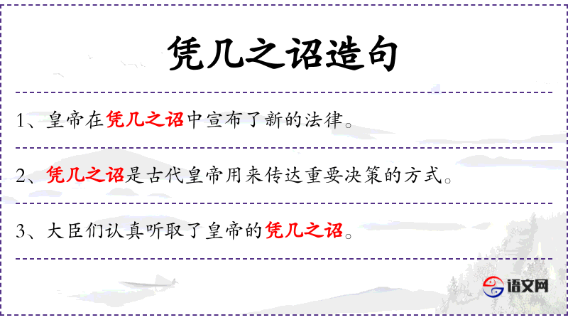 - 凭几之诏:指**依据某种理由或条件发布的诏令。