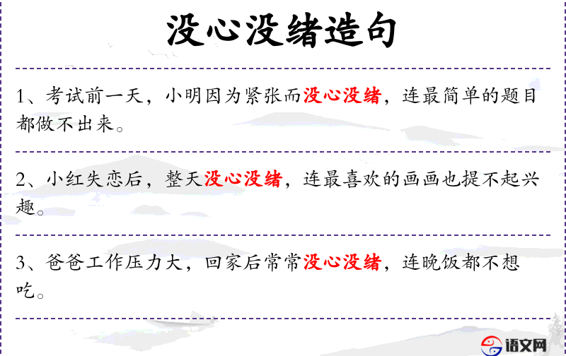 5. 【没心没绪】 没有心思与情绪。