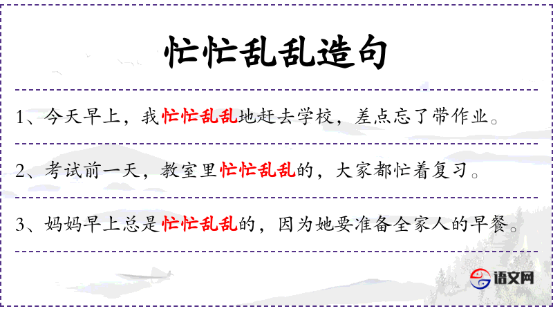 - 忙忙乱乱:形容场面忙碌而混乱。
