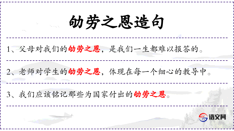 句子:“[老师对学生的劬劳之恩,体现在每一个细心的教导中。]”