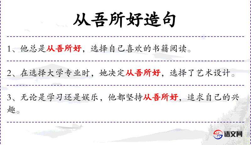 - 从吾所好:成语,表示按照自己的喜好行事。