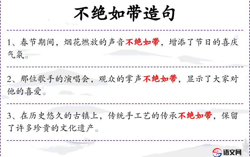 1. 【不绝如带】 形容局势危急,象差点兒就要断掉的带子一样。