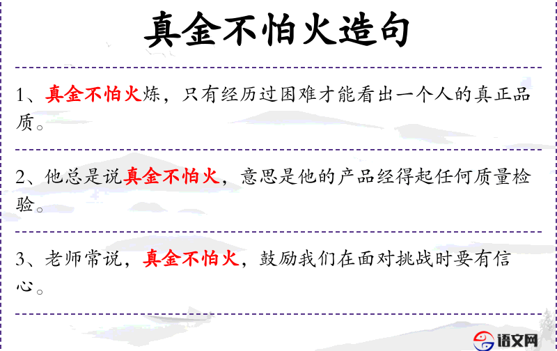 1. 【真金不怕火】 - 比喻正确的事物经得住考验。