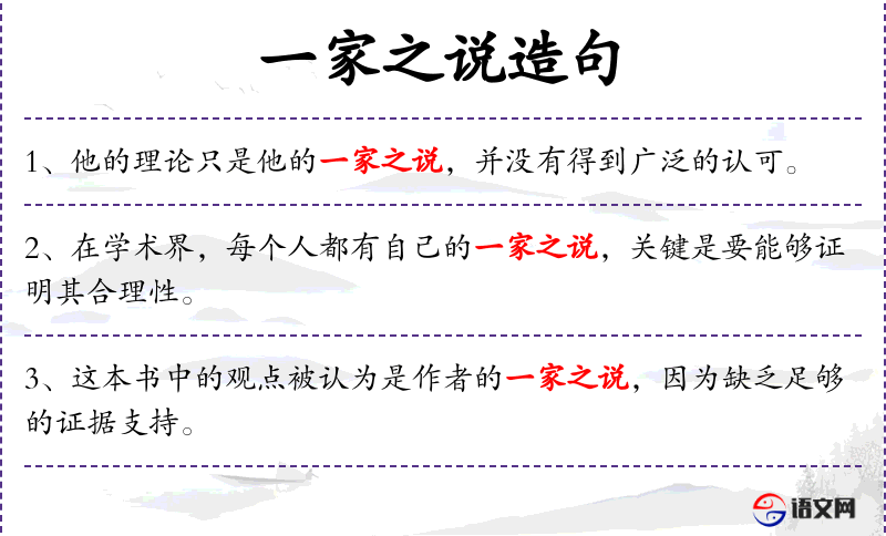 1. 【一家之说】 - 指有独特见解自成体系的论著。