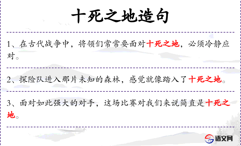 - 十死之地:源自**古代兵法,体现了对极端困难的比喻。