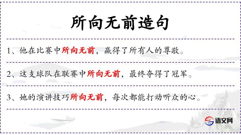 文化意义:“所向无前”这个成语体现了**文化中对勇气和毅力的推崇。