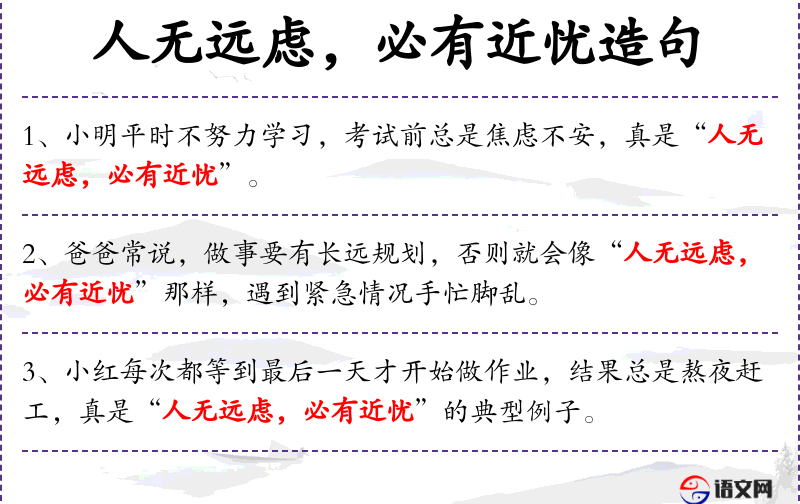 老师提醒我们,平时不积累知识,考试时就会感到困难重重,这就是“人无远虑,必有近忧”。
