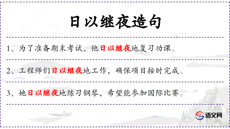 - 日以继夜地:副词短语,表示连续不断地进行某事。