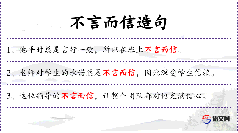1. 【不言而信】 旧指君子不用说什么就能得到别人的信任。形容有崇高的威望。