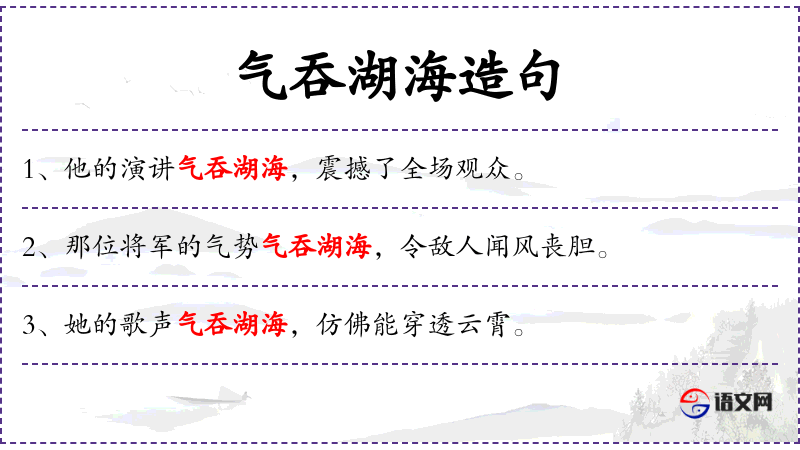 4. 【气吞湖海】 - 犹气吞山河。形容气魄很大。