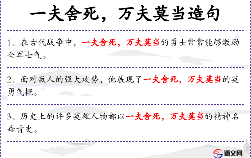 1. 【万夫莫当】 - 形容非常勇敢。同“万夫不当之勇”。