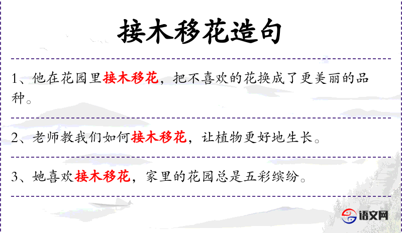 - 宾语:接木移花的活动