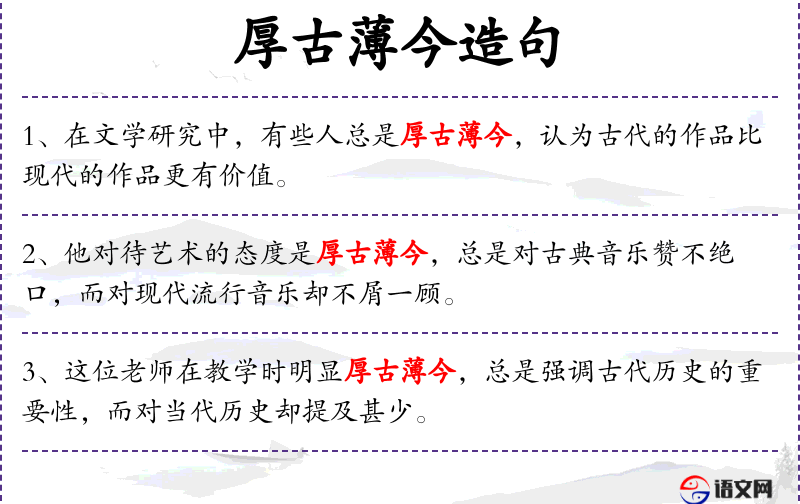 - *厚古今**:指对过去的事物有深厚的感情,而对现代的事物则不以为然。