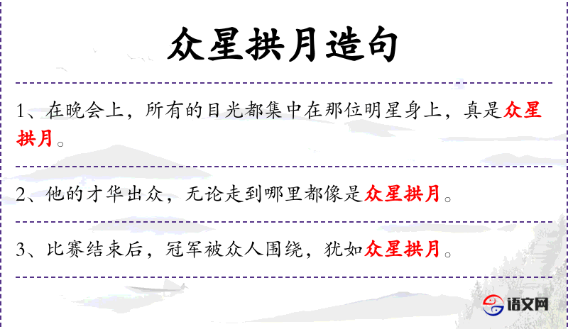 众星拱月:这个成语源自古代天文学,形容众多星星围绕着月亮,比喻众人围绕或尊敬某个人。这个成语体现了人对集体和中心人物的重视。