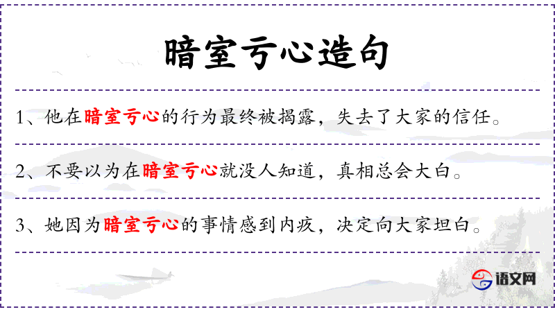 1. 【暗室亏心】 - 在暗中做见不得人的亏心事。