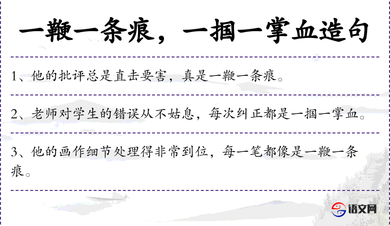1. 【一鞭一条痕】 - 比喻做事着着落实或说话切中要害。同“一棒一条痕”