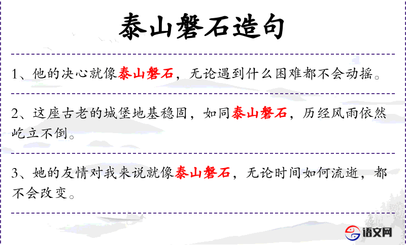 7. 【泰山磐石】 比喻安定稳固。