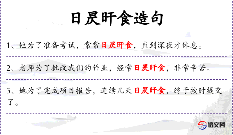 - 日昃旰食:成语,意为白天工作到很晚,晚上还要继续工作,形容非常辛苦。