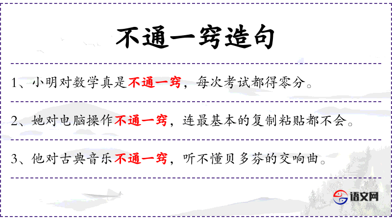 1. 【不通一窍】 - 窍:洞,指心窍。没有一窍是贯通的。比喻一点儿也不懂。