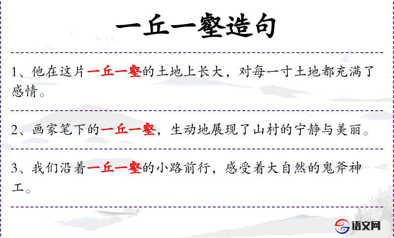- 一丘一壑:形容词,形容地形起伏,多用于文学作品中。
