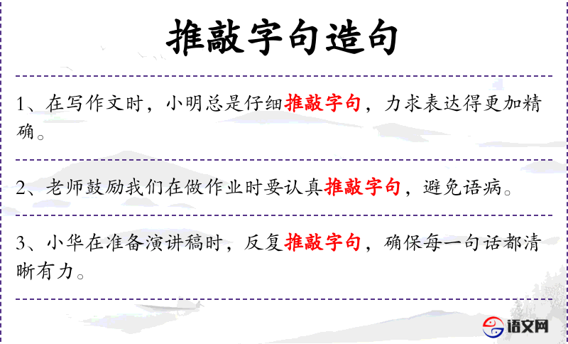 - 推敲:仔细琢磨和修改,以达到更好的表达效果。