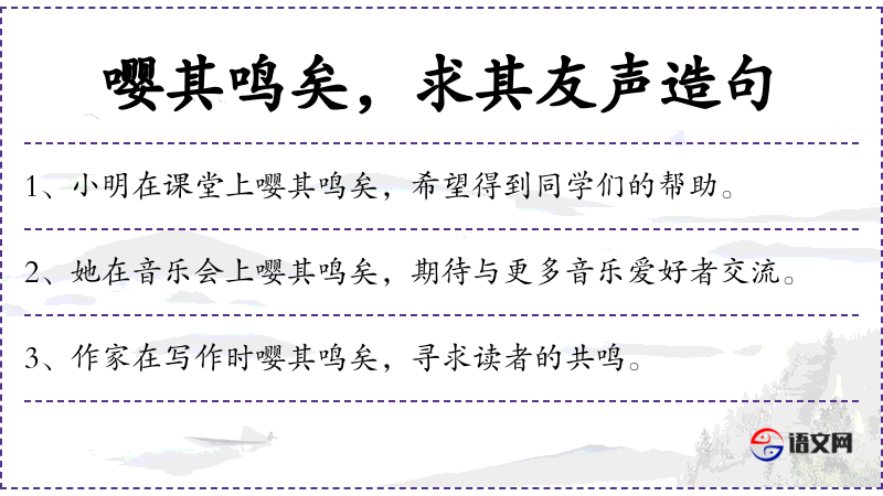 句子:“[作家在写作时嘤其鸣矣,寻求读者的共鸣。]”